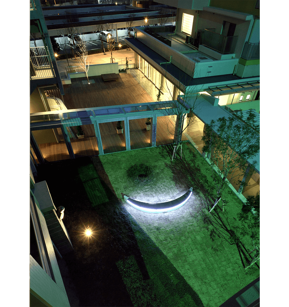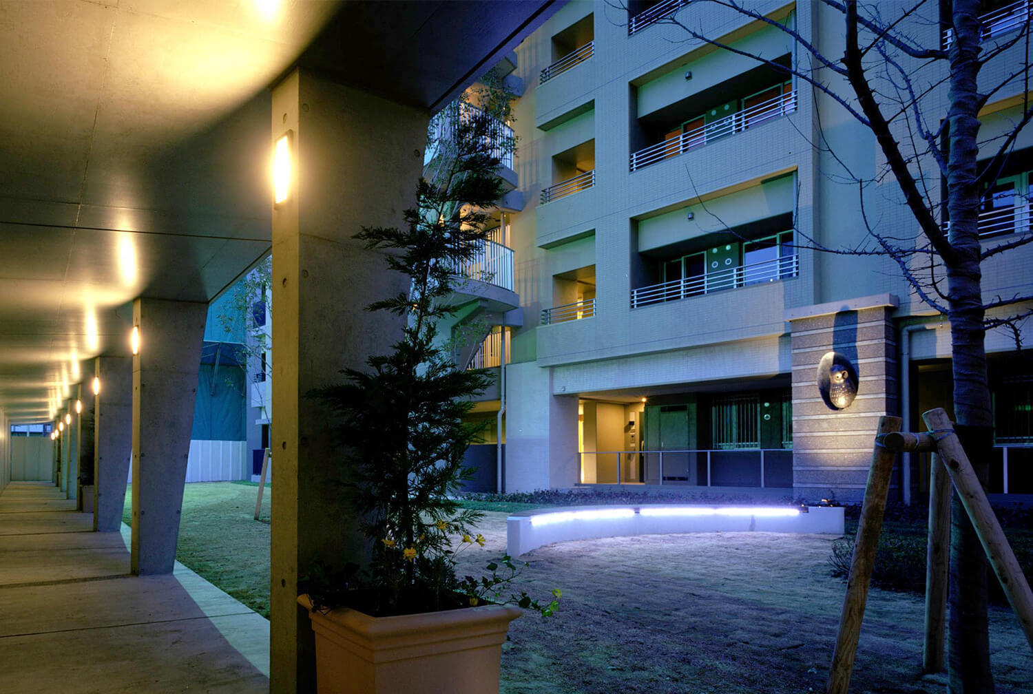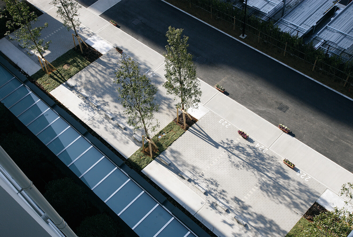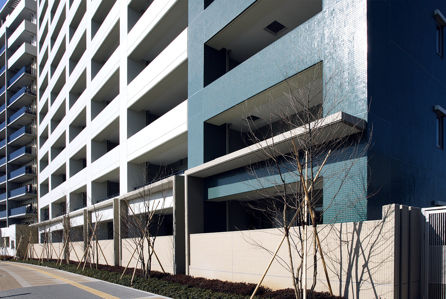 複数のアーバンデザイナー・建築家が協働で街をつくる話題の住宅地の一角となる集合住宅。街並、景観を重視し、外部空間や隣接棟との関係を協議調整しながら、沿道型住戸や特徴ある外部階段、コンクリートの回廊、アートとのコラボレーションなど個性と調和のバランスを考慮したデザインとしました。