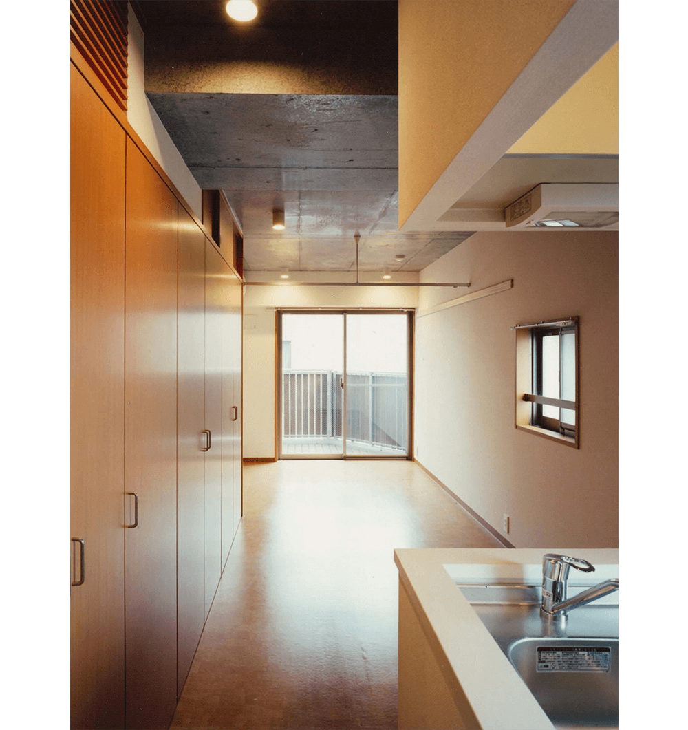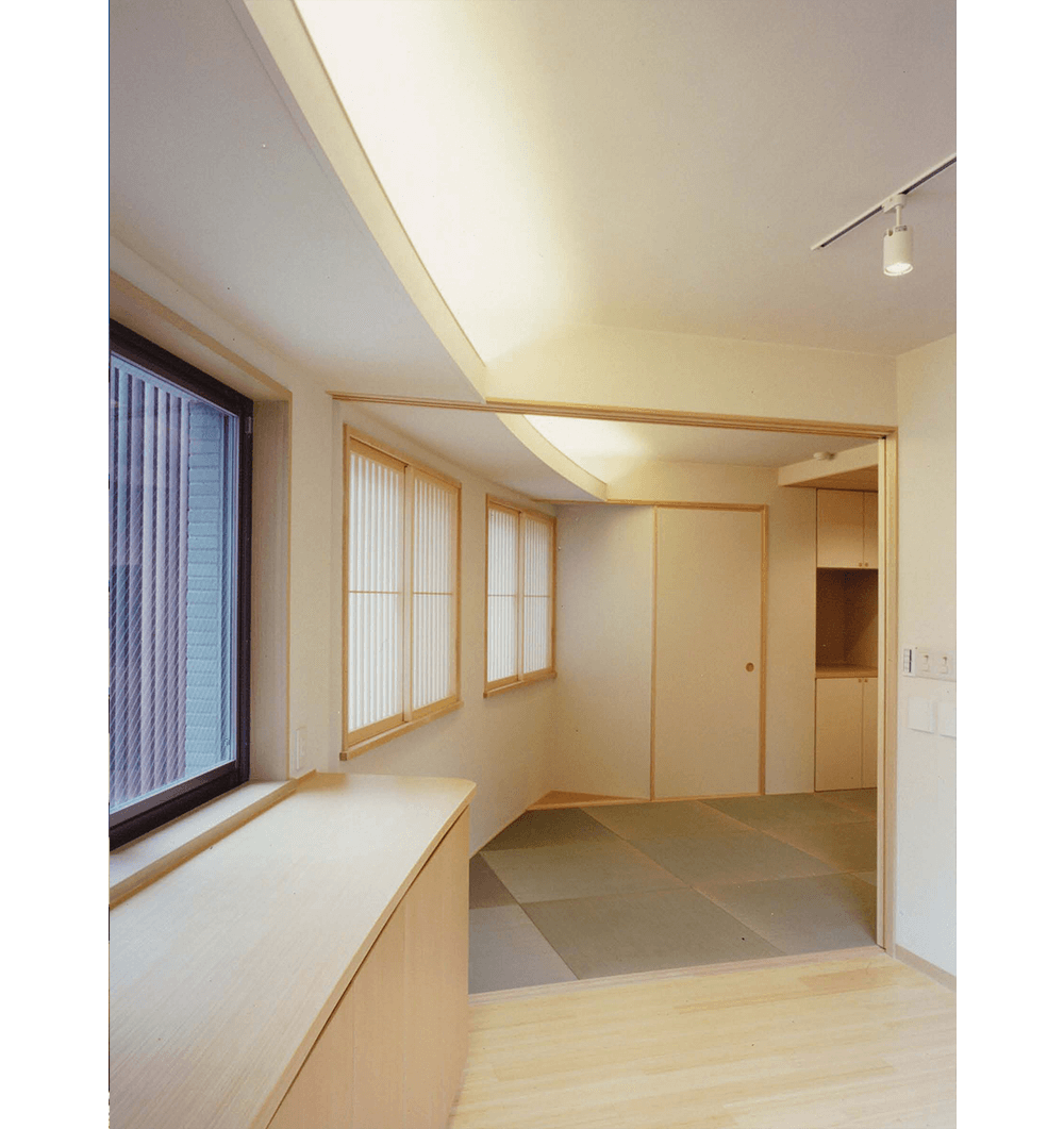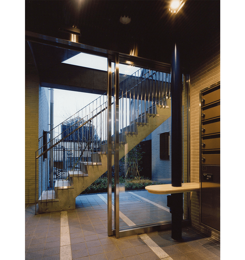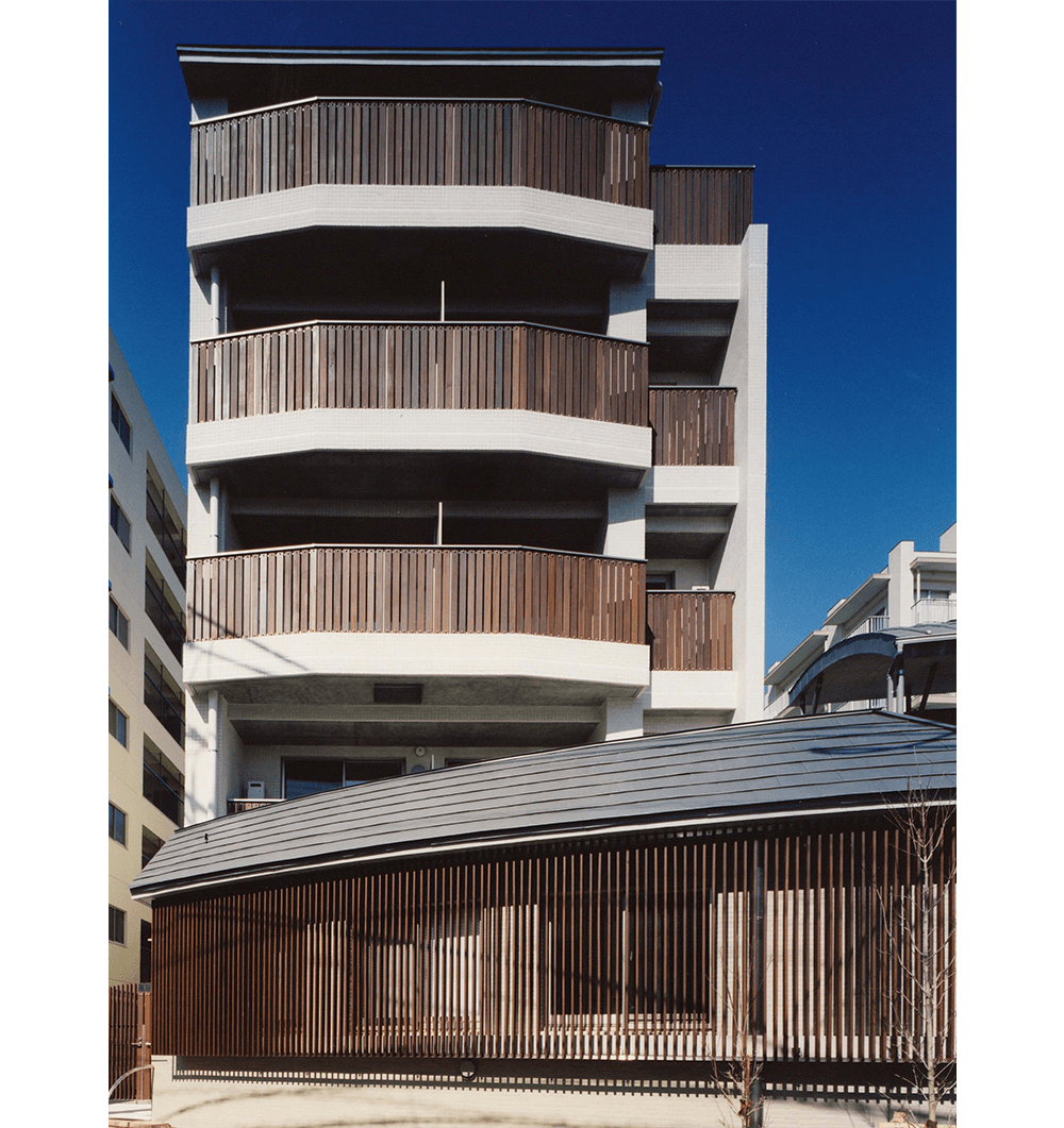 柔らかな曲線の屋根・平面をモチーフに、特注手づくりタイル、木製手摺、バルコニーウッドデッキなど特有な自然素材、温かな照明による夜間景観など、既存隣地オーナー住戸とも調和したヒューマンで安らぎのあるデザインを目指した。中庭の緑と、有線放送による音楽が迎える上品な落着きあるエントランス、窓からの外光で明るくゆとりのある洗面化粧台、広々とした屋外リビングのようなバルコニーが特徴。住宅性能面では厚いコンクリートの壁・床、断熱・防音サッシュ、遮音床構法などで気密性、遮音性を高め、全ての設備配管を床スラブ上に通し将来の取替をし易くするSI(スケルトンインフィル)構法を採用している。防犯カメラ、窓付エレベーター、オートロック玄関、防犯格子、出入り口段差の少ないバルコニーなど、防犯、バリアフリーにも配慮した、安全・安心住宅でもある。