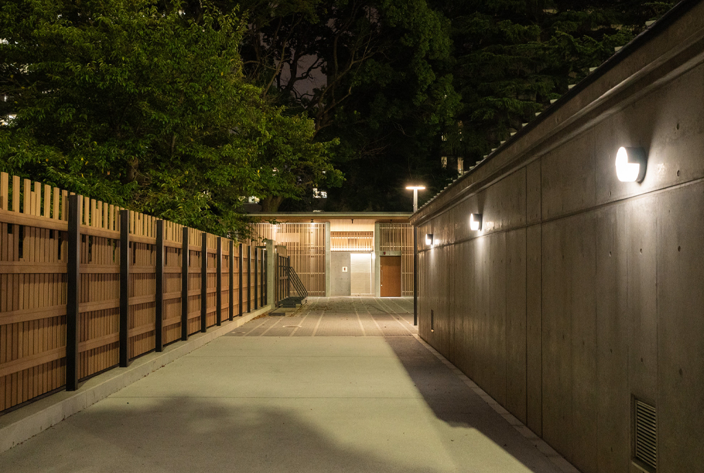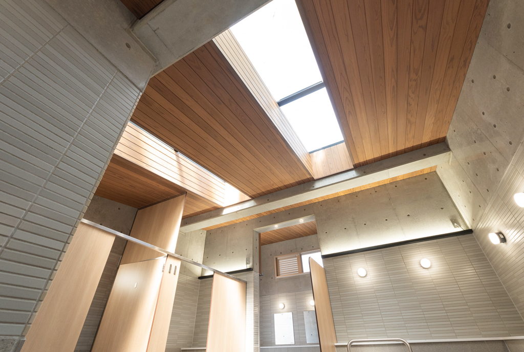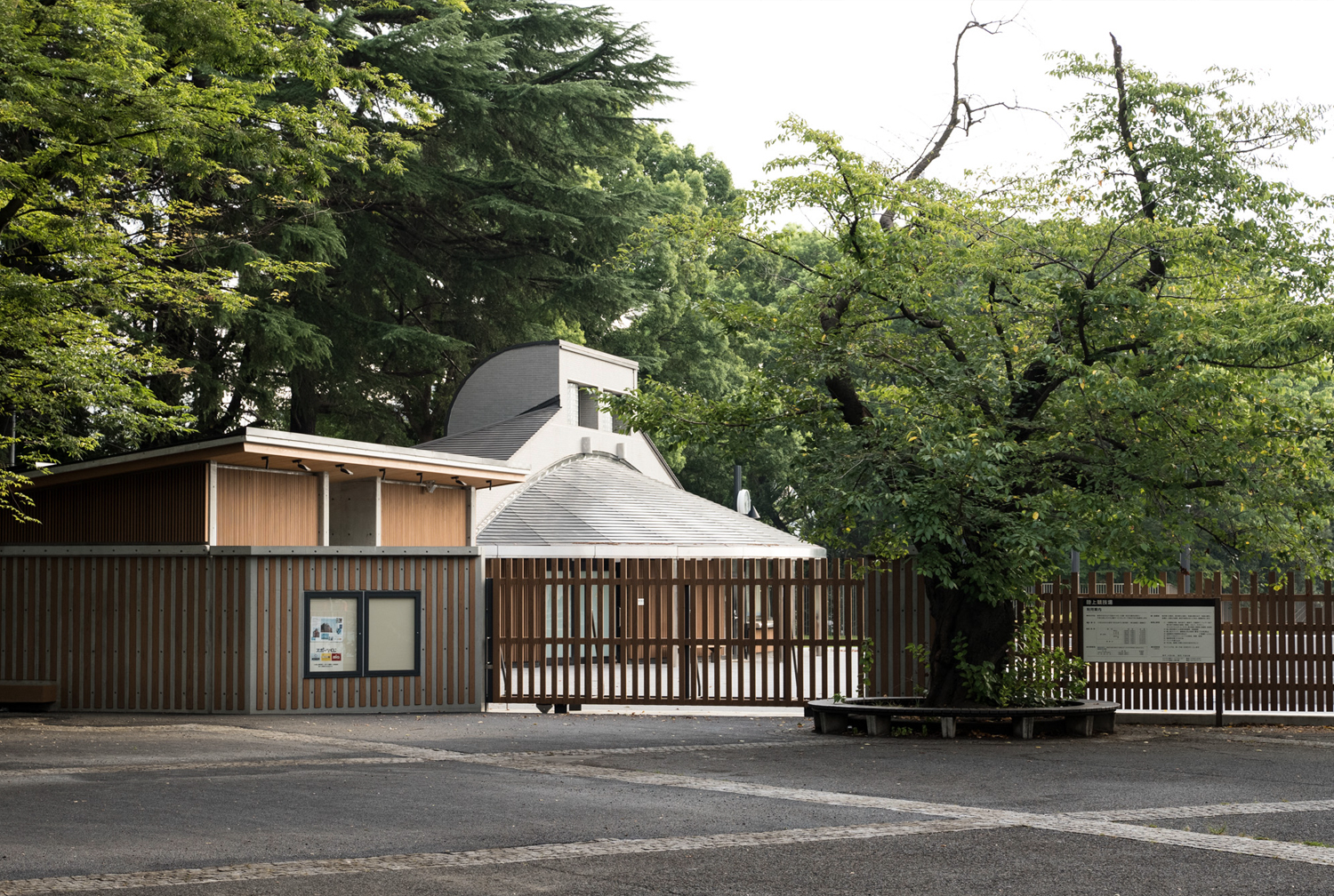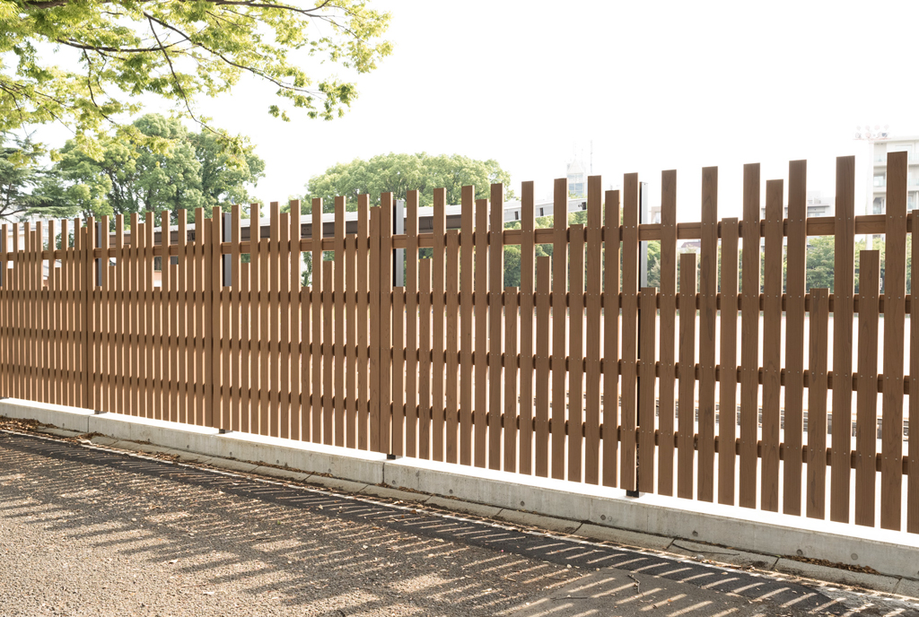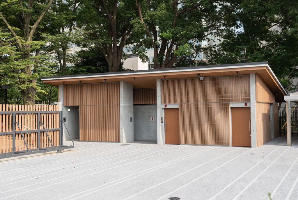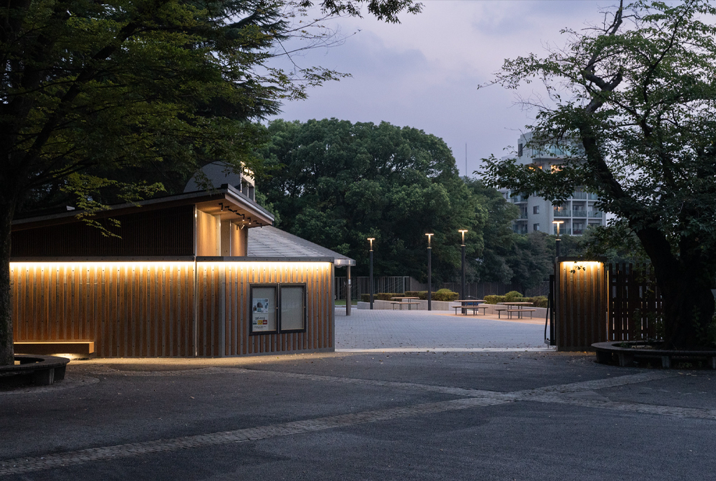 ・公園景観、地球環境などから、フェンスや建物外装に国産木材のデザインを基調にしています。