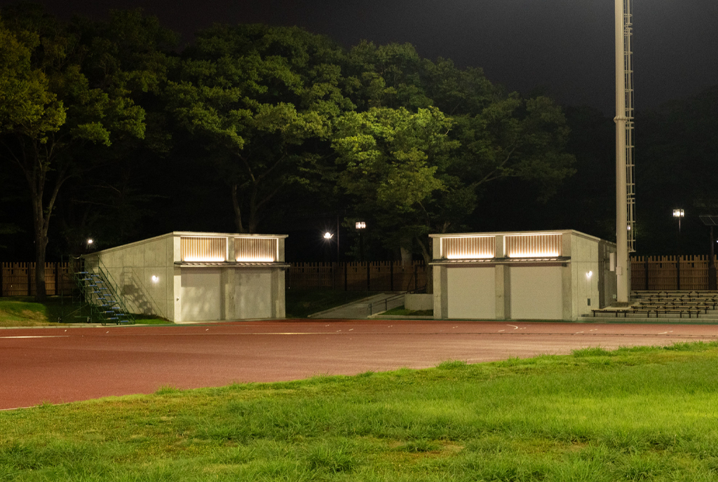 ・全体の基本設計から、用器具庫、トイレ、シェルターの新築、フィールドハウスの改修や、門扉、フェンスなど施設・建築の実施設計・現場監理を担いました。
