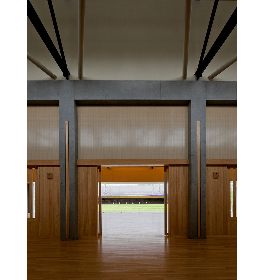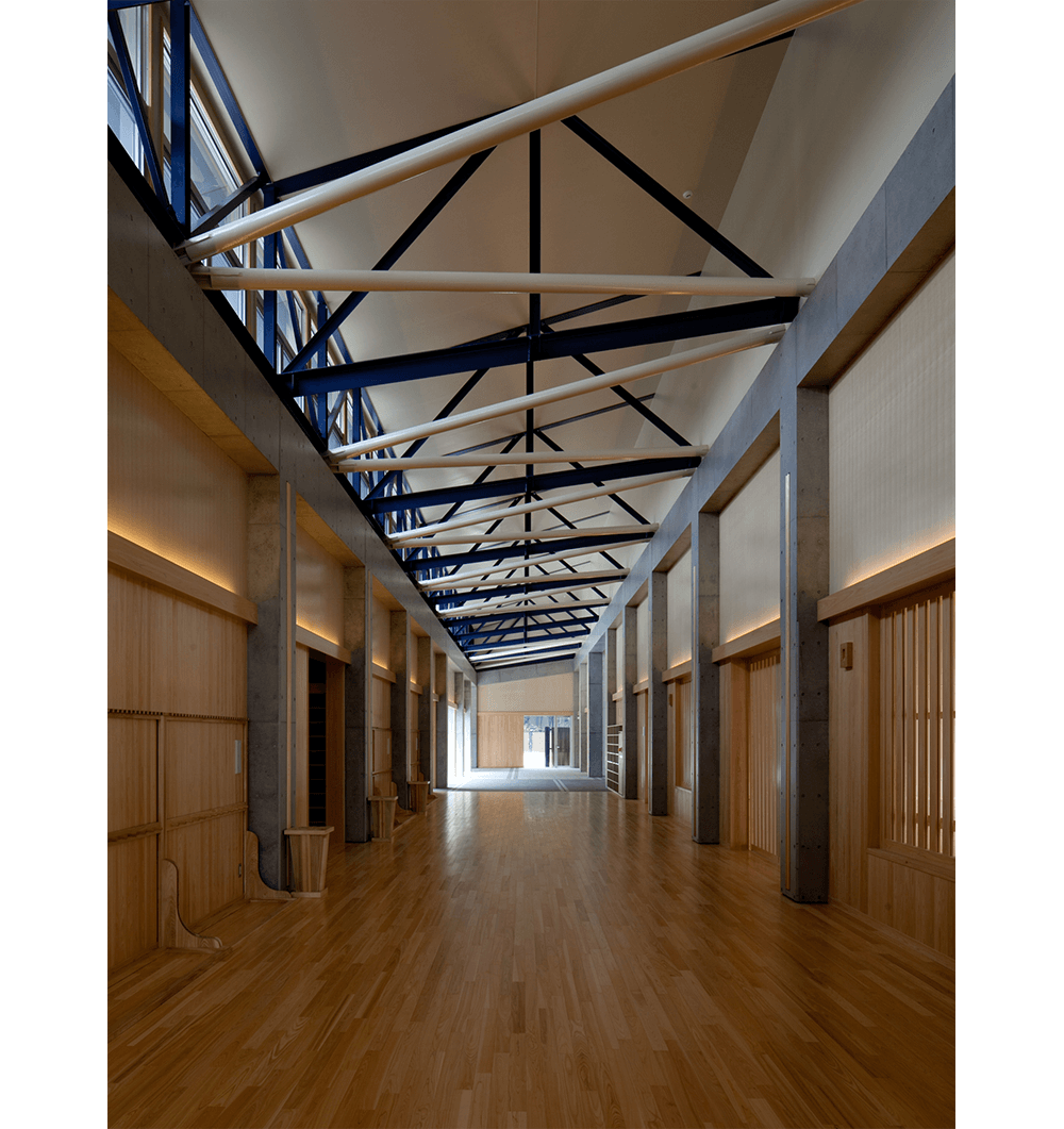 平成25年東京国体の弓道競技開催会場になる小金井公園内の弓道場。競技者だけでなく、公園利用者にも開かれ、優雅さ,力強さ,風格をあわせ持つ本格的な弓道場。和風イメージの瓦棒葺き大屋根とコンクリート化粧型枠や地元多摩産材の素材感を生かし伝統と現代最新技術を融合しました。